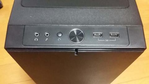 左からヘッドホン端子、マイク端子、リセットボタン、電源スイッチ、USB3.0という構成です。