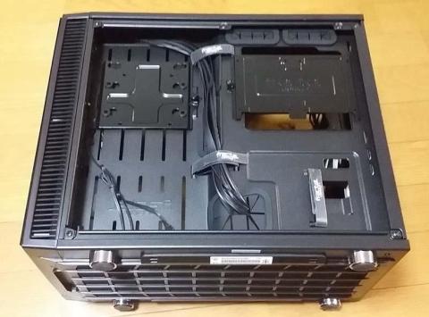 『Define Nano S』には、表側にドライブベイがなく、裏配線スペースにシャドウベイとして3個のドライブベイスペースがあります。
