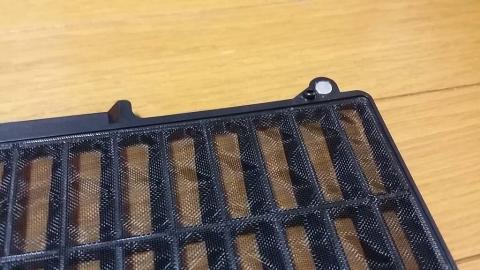 この防塵フィルターは、サイドからフィルター本体をつまむように固定するタイプなので、外側に厚みのあるものを貼り付けてあっても、問題なく付け外しが出来ます。