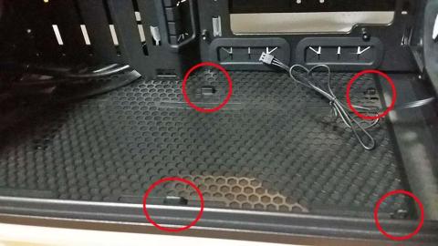 ※フロント側の防塵フィルター右側に網目がありますが、こちら側は裏配線側にしか開口部が繋がっていません。