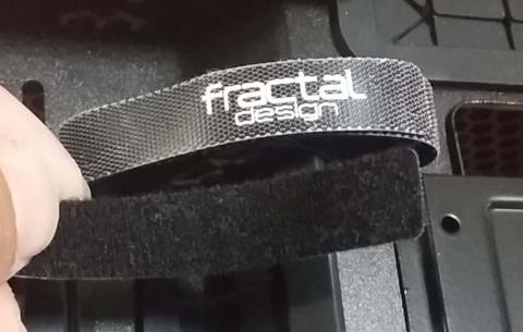 このベルクロテープは、毛足が短いタイプですが、ほんの少しでも重なっていればガッチリと固定してくれるだけでなく、Fractal Design の文字ロゴが印刷されており、非常にカッコ良いデザインになっています。
