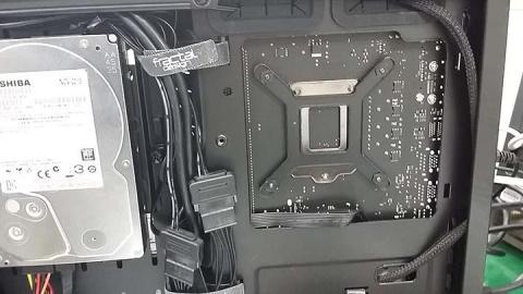 2.5インチ専用ドライブホルダーを取り外すと、M/B裏メンテナンスホールが現れます。