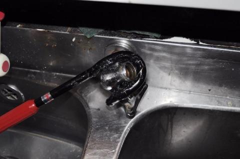 レンチで締め付けますが、力任せに締めすぎないようにご注意を。