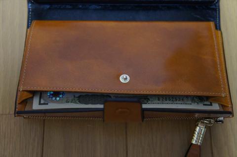 手前側のファスナーのところが小銭入れなので、お札はこちらに入れます。