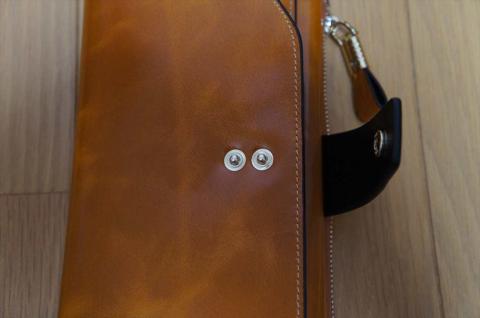財布が膨らんできてもいいように、スナップは2つ装備しています。