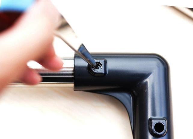 先端の尖ったもの(写真はハサミ)で、白い突起パーツが飛び出るようにして固定。