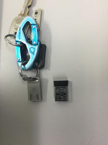 鍵と一緒に持ち運んでいます。横にあるのはマウスのドングルです。