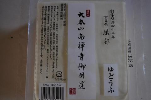 服部さんは、金戒光明寺黒谷さんの近くにあり、南禅寺さんからご指名を受けてはる、ちょっとええお豆腐屋さんどすけど、今は通販でも買えるそうどす。
