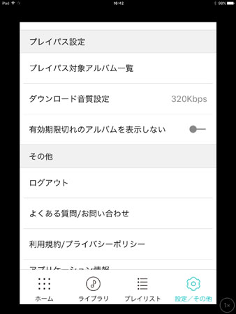 ダウンロード音質(ビットレート)は、128Kbpsと320Kbpsが設定可能です。