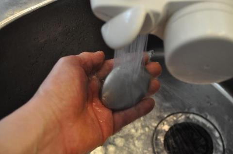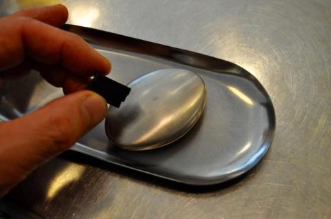 が、このステンレスソープを両手に挟んで流水の中で揉むと、確実に匂いが取れてしまいます。