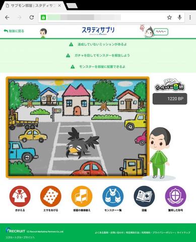 また、子供の受講意欲を高めるために「サプモン」というモンスター育成のコンテンツと「放課後コラム」があります。