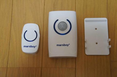 左側が送信機、真ん中が受信機になります。右側は、受信機を壁に取り付けるためのブラケットです。