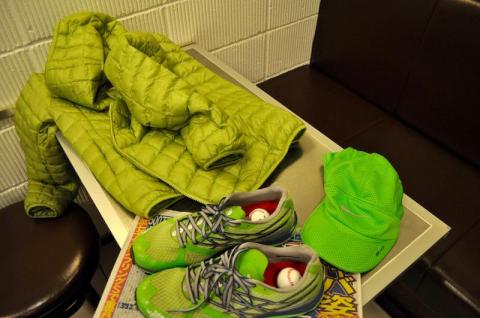 黄緑色のスポーツ用品をたくさん買いましたが、それは深夜ウォーキング時の安全性を考えてのことです。