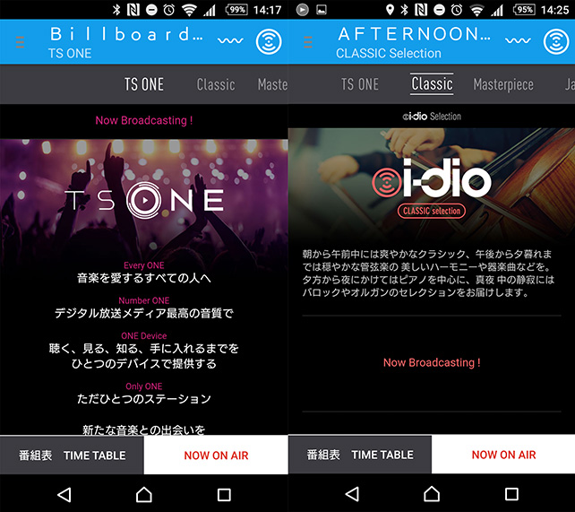 放送サービスは、関東では、AAC 320kbpsという比較的高音質の音楽放送 TS ONE があります。