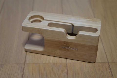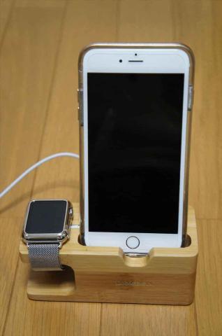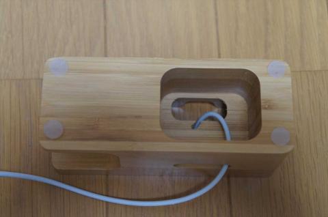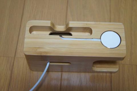 このように、隣にはiPhoneも置くことができます。一応iPhoneスタンドの下には穴が空いているので、Lightningケーブルを通して、iPhoneも充電スタンドにすることは可能です。その場合、充電していない時は、ケーブルを前の凹みに垂らしておくと良いでしょう。