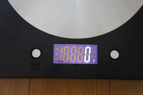 g以外には、ml、oz、ポンドに切り替えが可能。