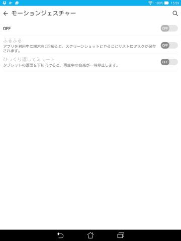 なかなか面白いのは、ZenMotionと名付けられた機能で、画面内のアイコン等が無い箇所のダブルタップすると、スリープボタン押下と同じ動作をするということでしょうか。つまりスリープ状態で画面の任意の箇所をダブルタップすることでスリープが解除され、逆にホーム画面の壁紙部分をダブルタップすることでスリープ状態に入るというものです。