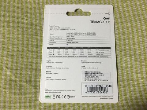 TEAM製の32GB Class 10 UHS-1対応品となっています。
