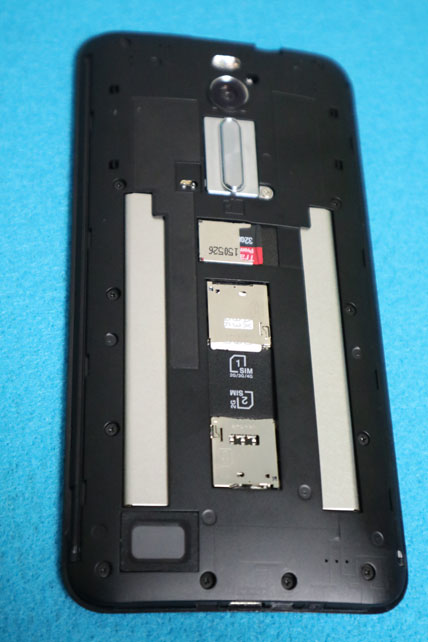 さて、外カバーをはずし、MicroSD と MicroSIM を抜いておいてから、また裏ブタをあけていきますよ~(今度は自分でやりました)