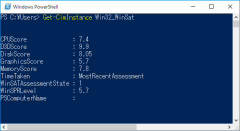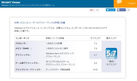 Windows エクスペリエンスインデックスは以下の通りです。