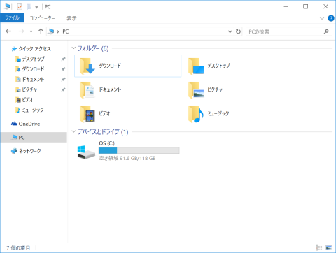 初期状態の空き容量は91.6GB。