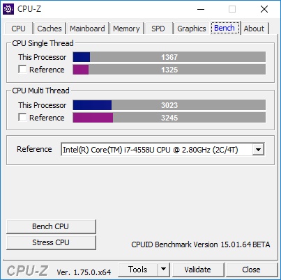 CPU自体は旧世代のcore i7-4558Uと同等レベルです。