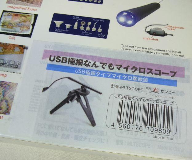 あやしい目の付け所が鋭く普通どこも取り扱わないようなニッチな商品を積極的に紹介する「サンコーレアモノショップ」の輸入した「USB極細なんでもマイクロスコープ」。元はたぶんSupereyesという中国のマイクロスコープ/マクロカメラメーカーのB003というもの...というかそのサブセット版??