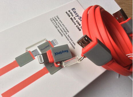 今回はライトニングケーブルとmicroUSBが一本で使えるケーブルとなります。