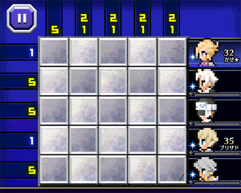 「ん?なにこれ簡単すぎない?」と思った方は正しい。そう、パズル自体は非常に簡単なんです。イベント期間中は色々な難易度のパズルが出てきますが、どんな難易度のクイズであっても全てこれ。5×5の25マスしかありません。このパズルの答えは簡単ですね。