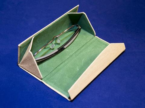 内側の折れ目を外側に広げることで三角柱のメガネケースになります。
