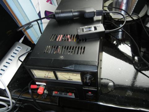 少し、車に付ける前に自宅で直流電源装置につないで確認しました。