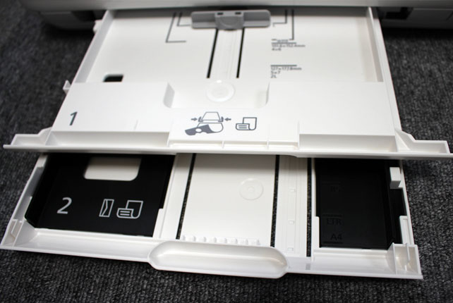 今は前面トレイ2段が標準なんですね~。後ろから入れないので、その分設置場所が小さくて済む…ということなのでしょうか。
