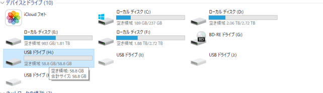 カメラ側でフォーマットして実質的な容量はは約58.8GB