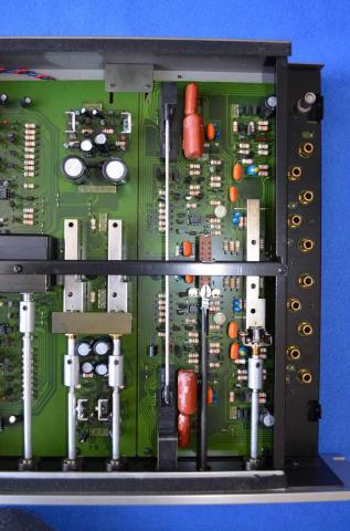 内部の配線材が無いと回路が綺麗に見えます 線材原因の残留ノイズや誘導ノイズも少なくなります デザインもすっきりしてるし、内部の配線も綺麗です ボリュームガリもなく操作感はカチッと決まるし良いですね 40年経っているなんて思えないアンプです どういう使われ方をしてきたアンプなのか比較的奇麗な方でした