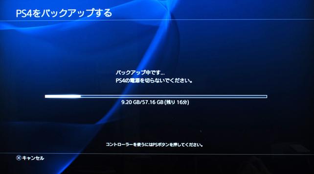 PS4 に USB ストレージ機器を接続し、(設定)>[システム]>[バックアップ/復元]のメニューから[PS4をバックアップする]を選択してバックアップを開始します。
