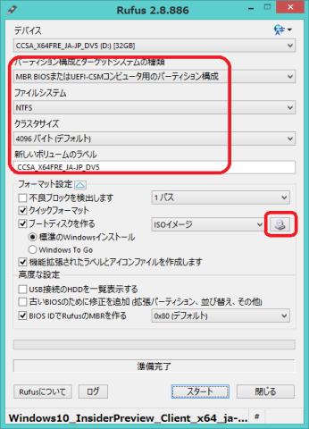 USBメモリーに書き込むソフトはRufus2.8.886で行いました。