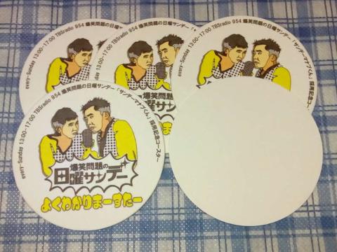 TBSラジオで土曜日13時から放送している「爆笑問題の日曜サンデー」のノベルティのコースターです。