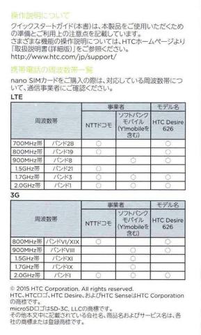 今回本体を MVNO業者から SIMと一緒に購入したため全く必要は無かったのですが、添付の「クイックスタートガイド」に[携帯電話の周波数帯一覧]が載っています。