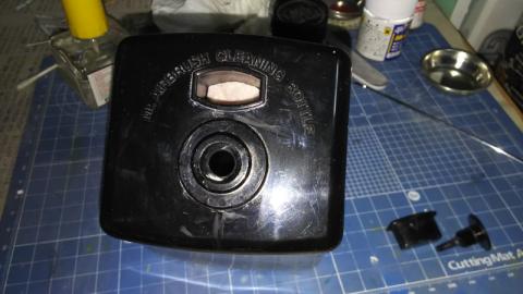 その際に上のフィルタ部分からエアが逆流しますから、塗料が外にでないようにするためのフィルタです。