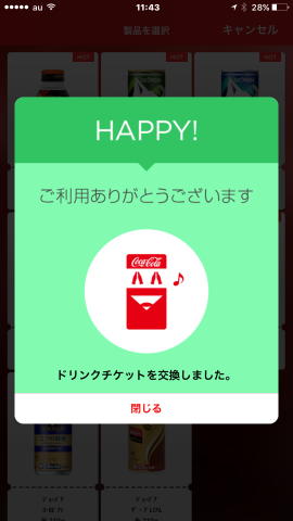 帰りに宮島桟橋のところのコカコーラ自販機で無料チケットを使ってみました。