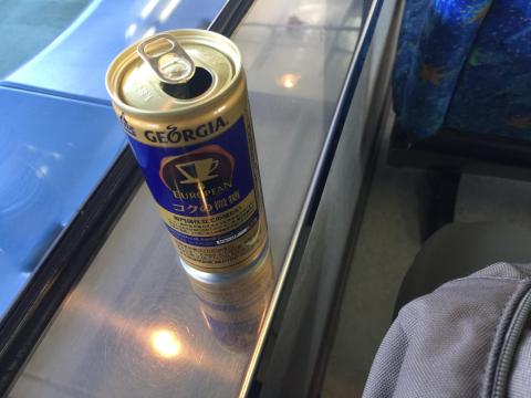 松大船で宮島口へ向かう中で温かい缶コーヒーを頂きました。