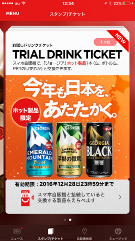 抽選で1回分の無料ドリンクチケットが貰えたりします。