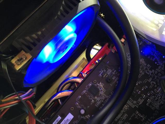 専用ファンが付属するが一般的な12cm 25mm角のPWMファンなら取り付け可能