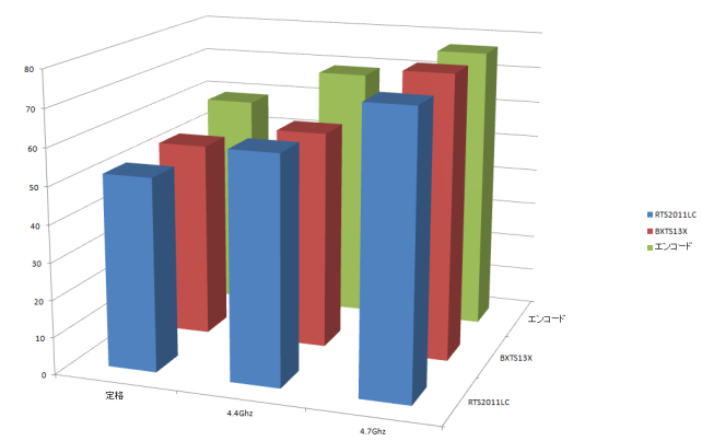 緑のバーだけはBXTS13Xでのエンコード時それぞれの最高温度になります