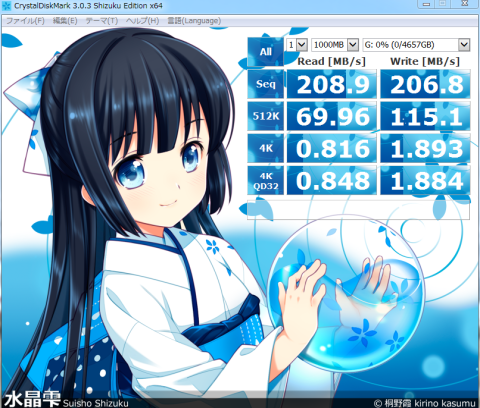 ちょっと古いSSD並です。速いがゆえにうるさいのか?その辺はよくわかりません。
