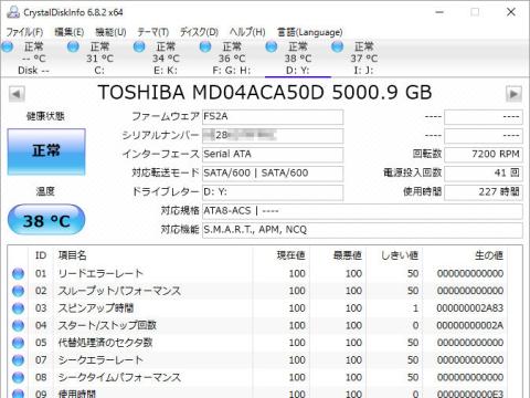まずは取り付けた直後のCrystalDiskinfo のステータスです、きれいなものです(笑)