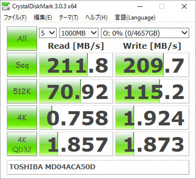 MD04ACA50Dは7200rpm バッファ128MB