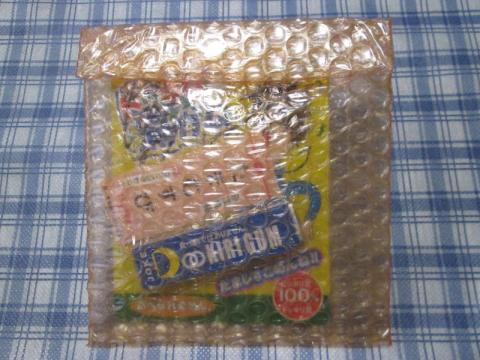 中には挨拶状とエアクッションの袋に収まったパッチンガムと月曜ステッカー。