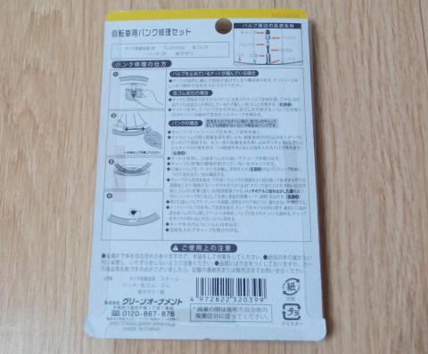 自転車がパンクしたので、100円均一のセリアで購入しました(´;ω;`)