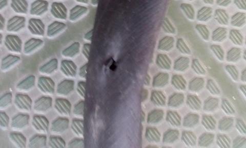 9.空気入れでエアチューブに空気を入れ、パッチでふさいだ部分から空気が漏れないか確認する。漏れてなければ成功。